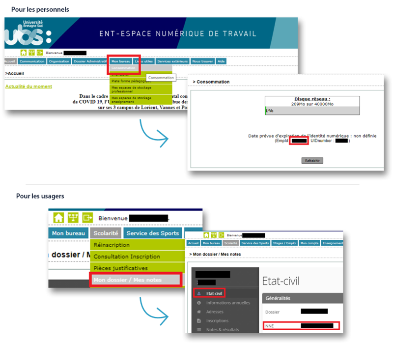 -Pour les personnels : cliquez sur le menu "Mon bureau" puis "Consommations" pour trouver le numéro EmpId